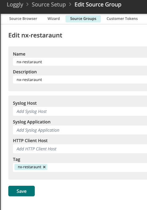 - Once you've created your Loggly account, you will need to add a Source Group to contain the NX logging data.