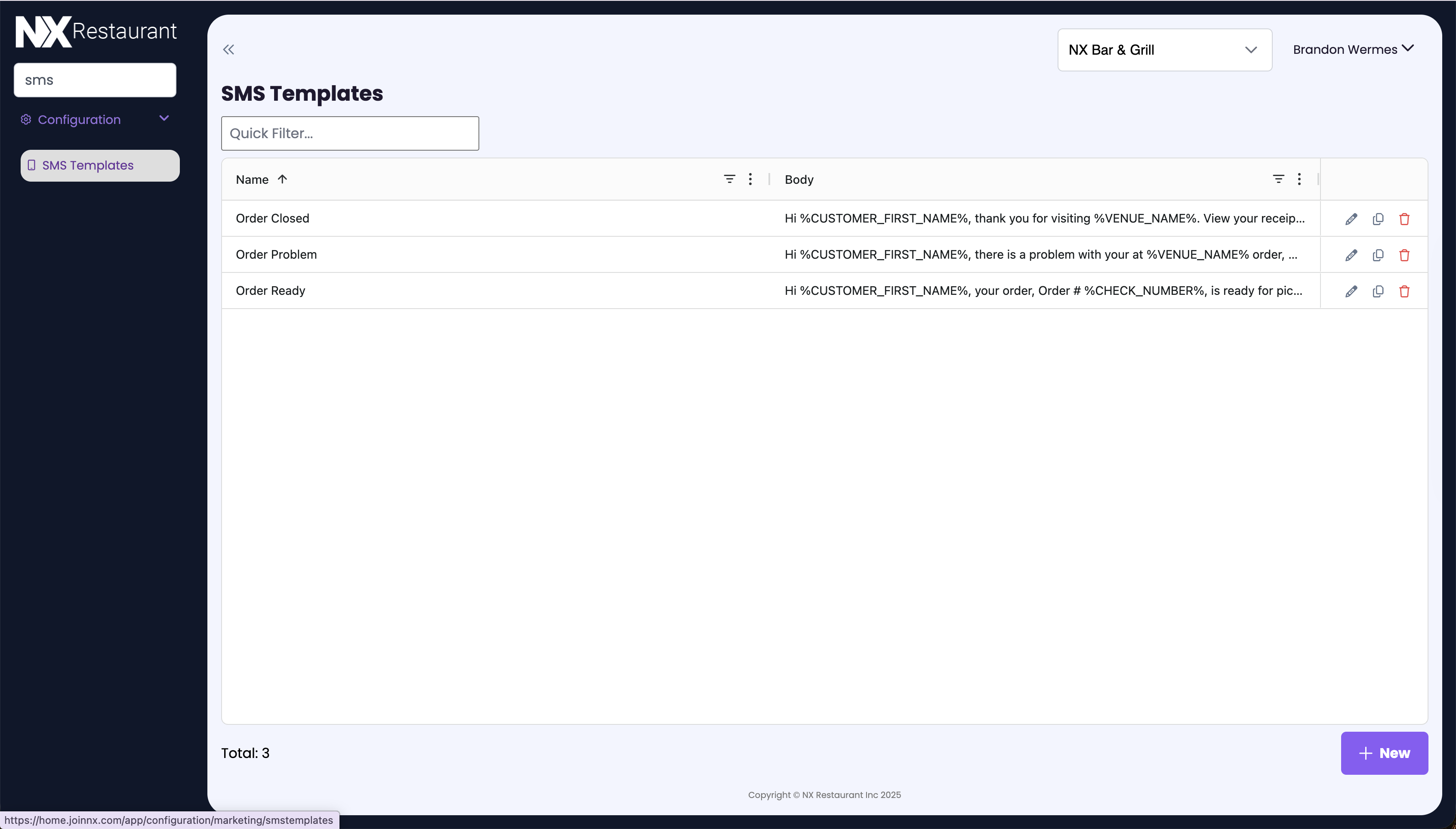 | Order Closed | “Hi Sarah, thank you for visiting NX Bar & Grill. View your receipt here: [link]” |