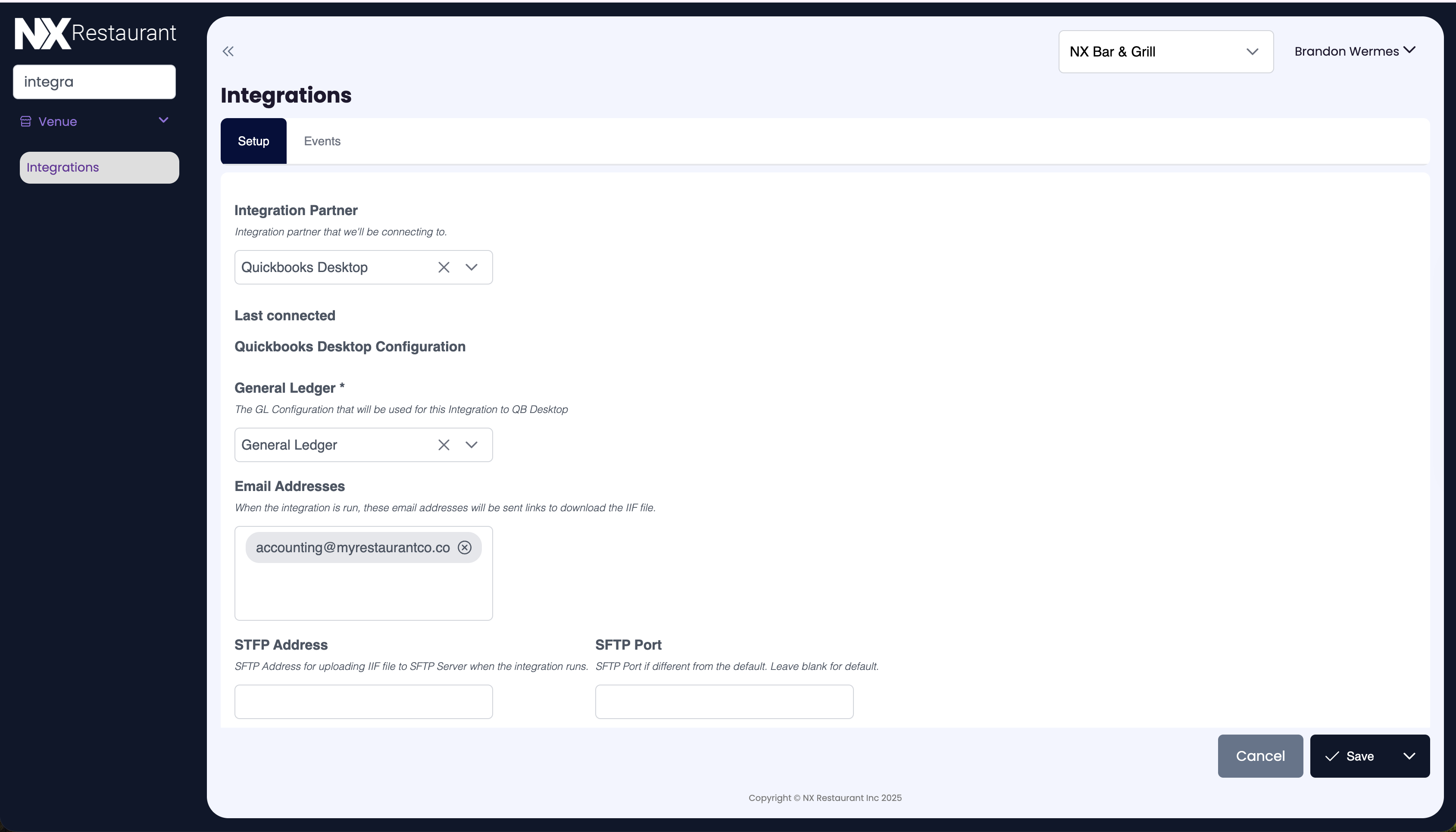 By setting up the QuickBooks Desktop Integration, NX automates your financial reporting workflow — saving time, ensuring accuracy, and maintaining seamless alignment between your restaurant operations and your accounting system.