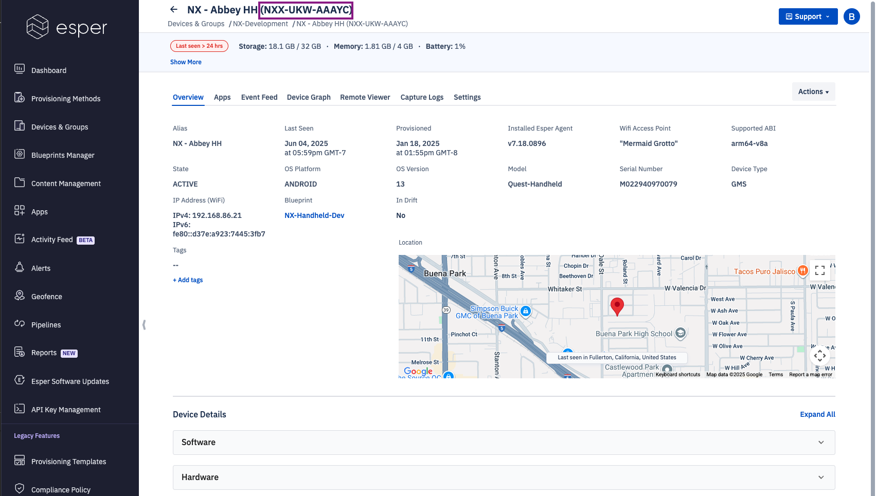 You can find this in the Devices & Groups section of the Esper Console.