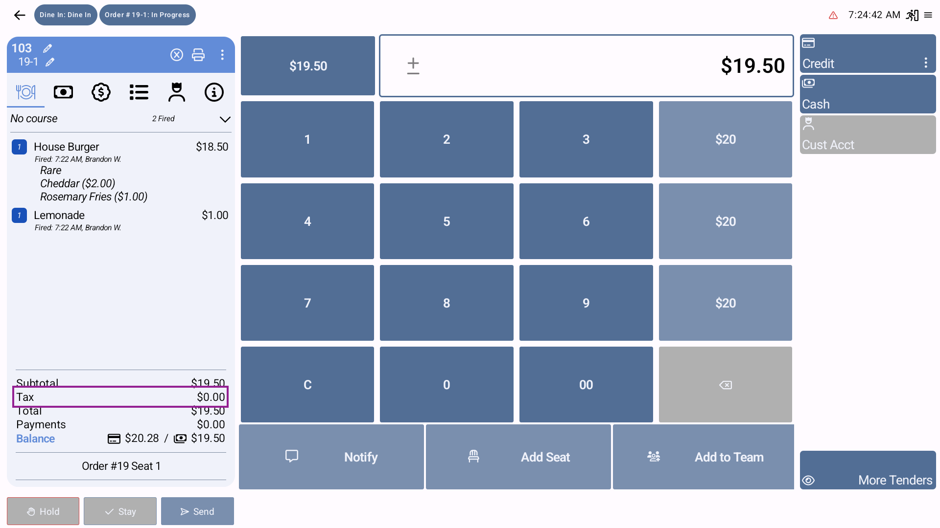 | Select no items → Apply Tax Exempt | Entire seat becomes tax exempt (current & future items) |