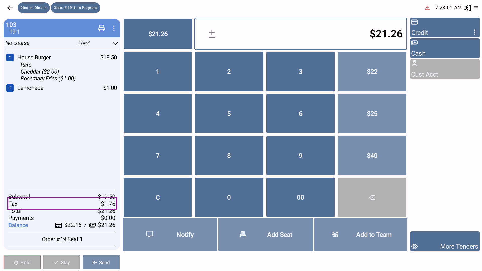 Once the form has been completed the Items and/or Seat will be Tax Exempted and the On-screen Check will reflect the new totals.