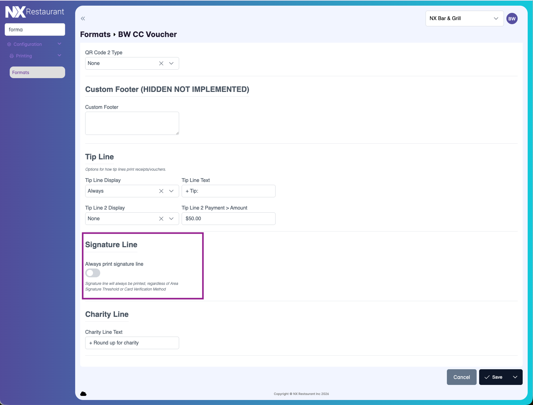 This guide will walk you through the three settings that determine how signature lines appear on your credit card vouchers. 🍽️