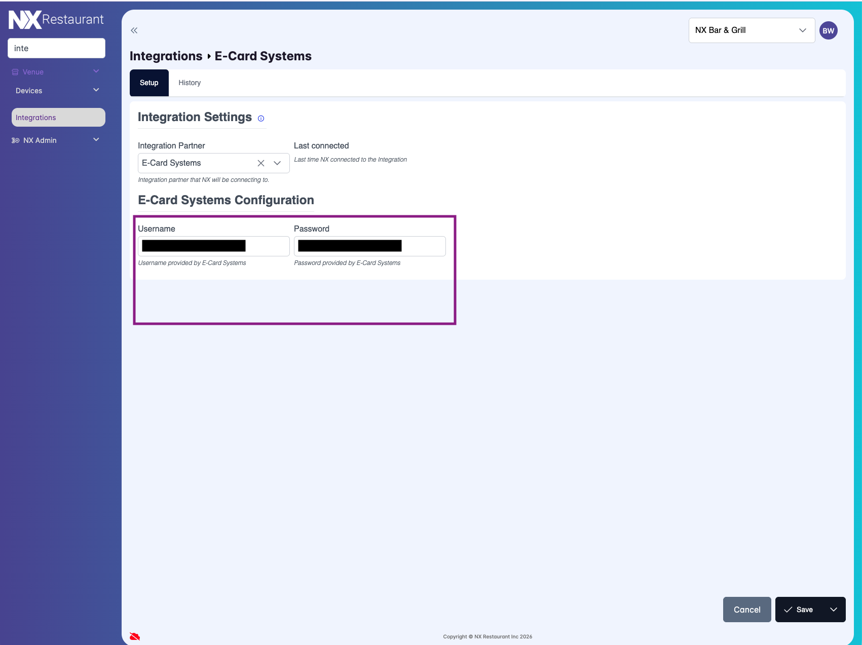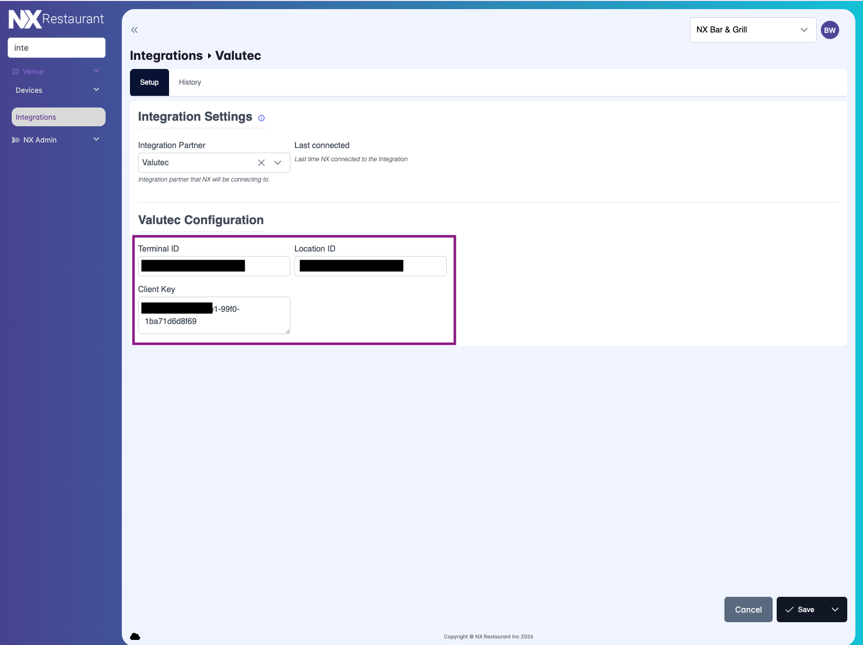 Select your Integration Partner from the dropdown (e.g., Valutec or E-Card Systems).