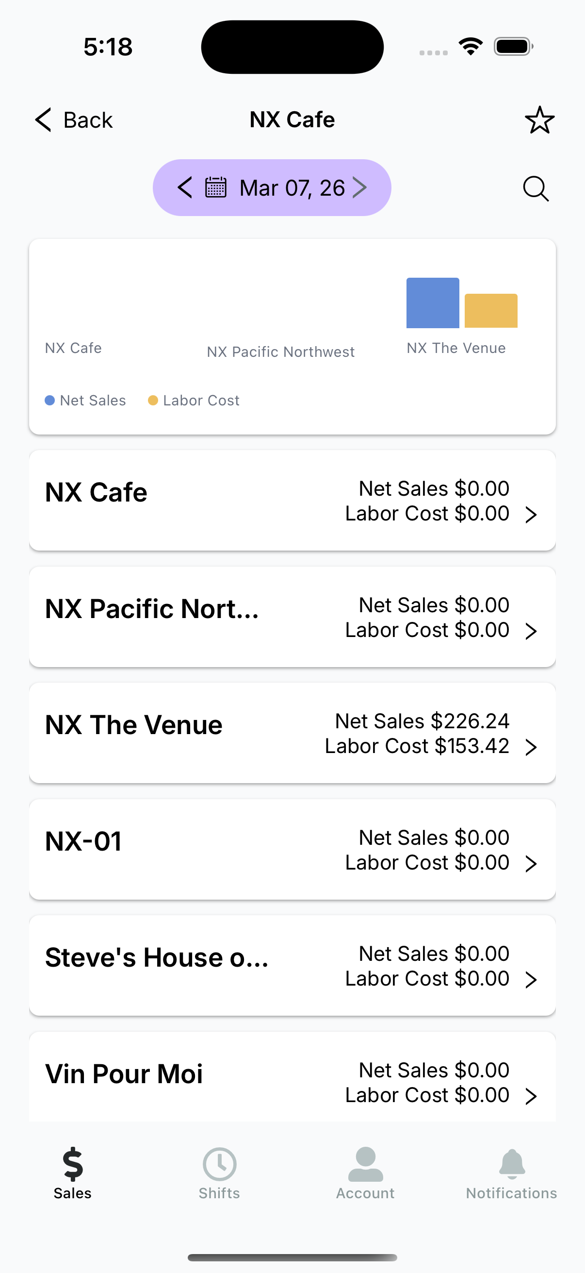 Comparing Venues: Look for venues like "NX The Venue" where sales are significantly higher than labor costsโthat's a sign of a healthy shift!