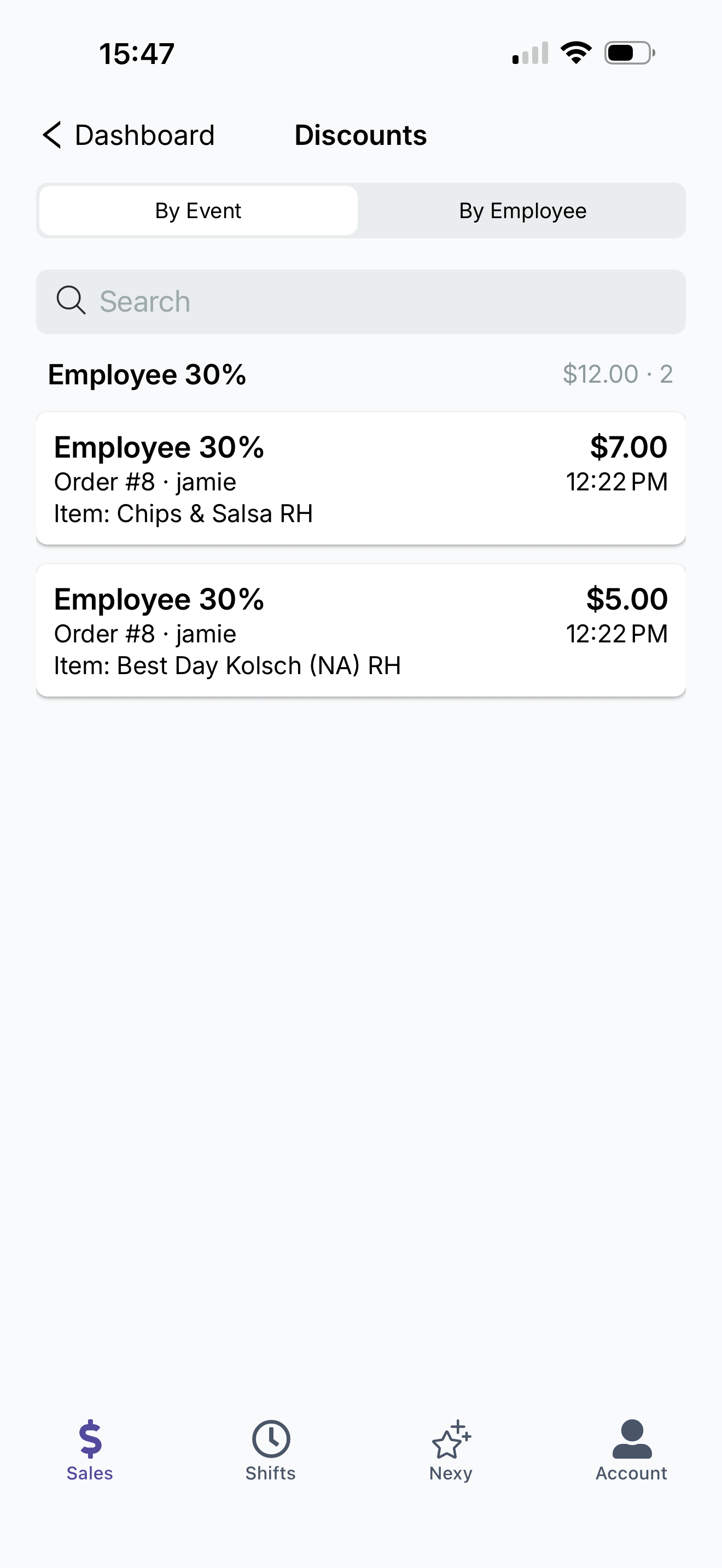 By Event: This tab groups all discounts by the specific promotion type (e.g., "Employee 30%"). Itโs perfect for seeing the total impact of a specific sale or perk.