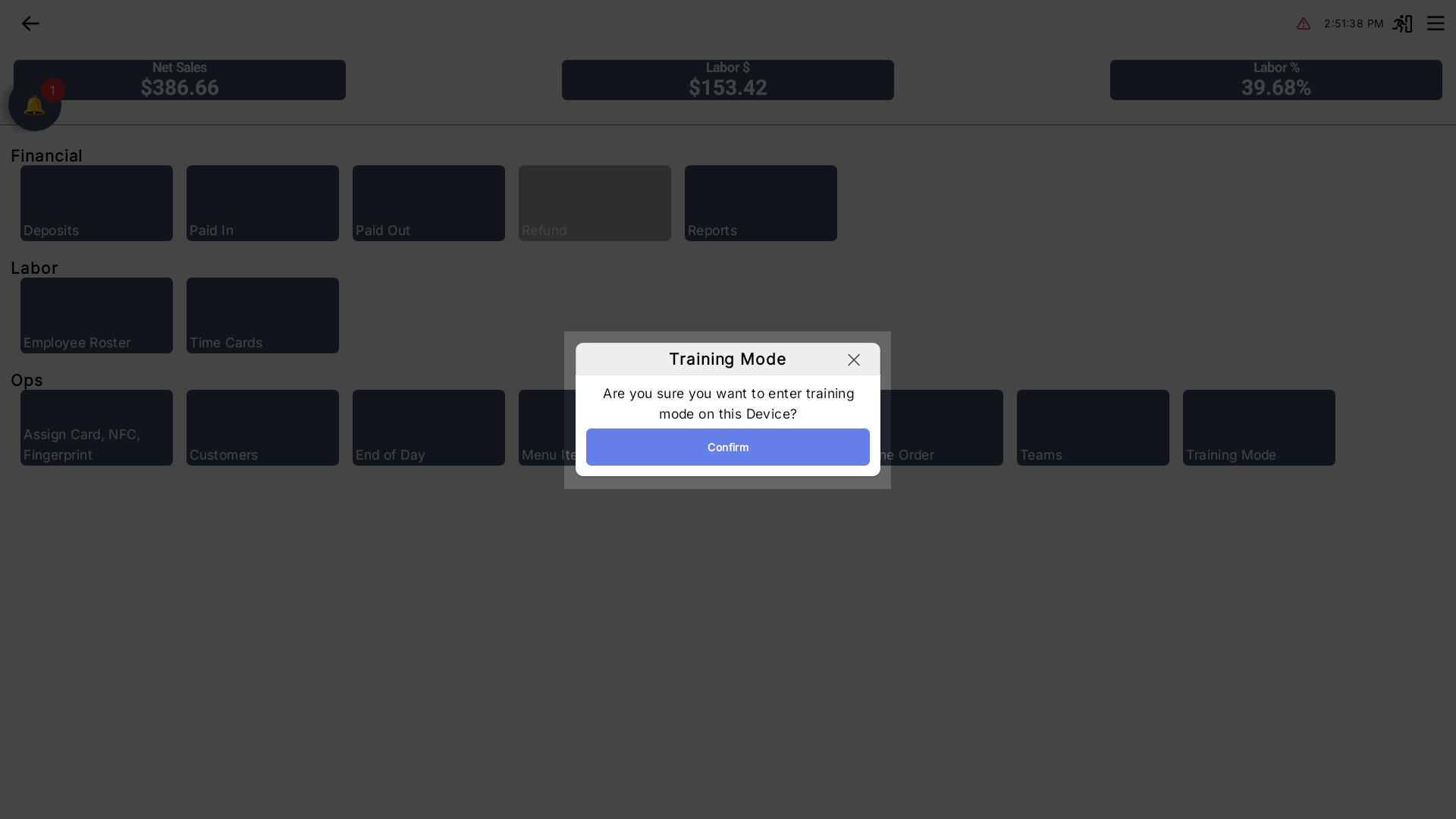 Safe Reporting: Training transactions are kept separate and will not inflate your actual Net Sales or Labor metrics.