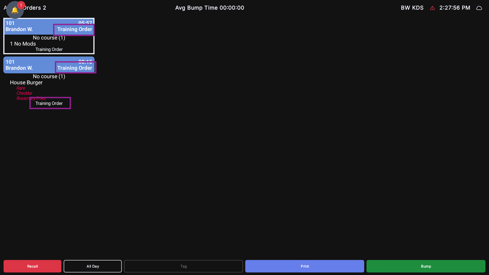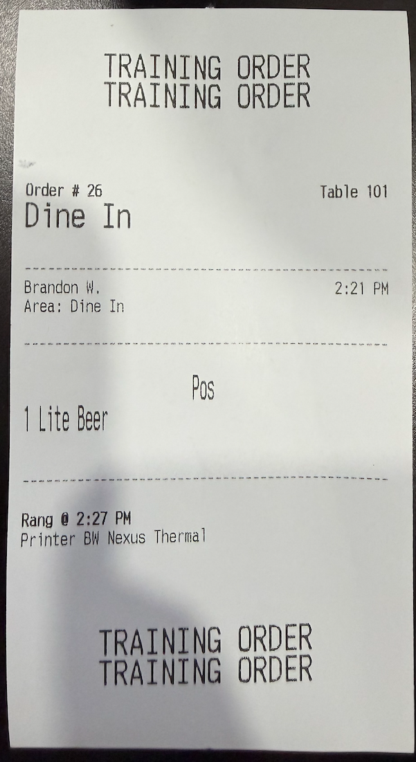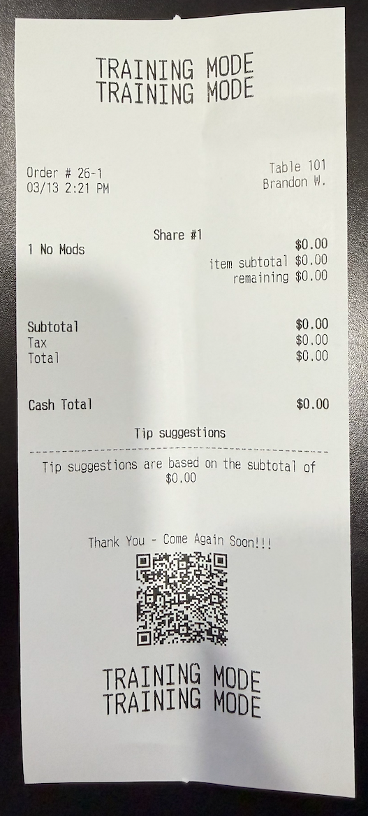 Receipts & KDS: All printed receipts, kitchen prep chits, and KDS (Kitchen Display System) tickets will clearly display "TRAINING ORDER" or "TRAINING MODE" at the top and bottom.