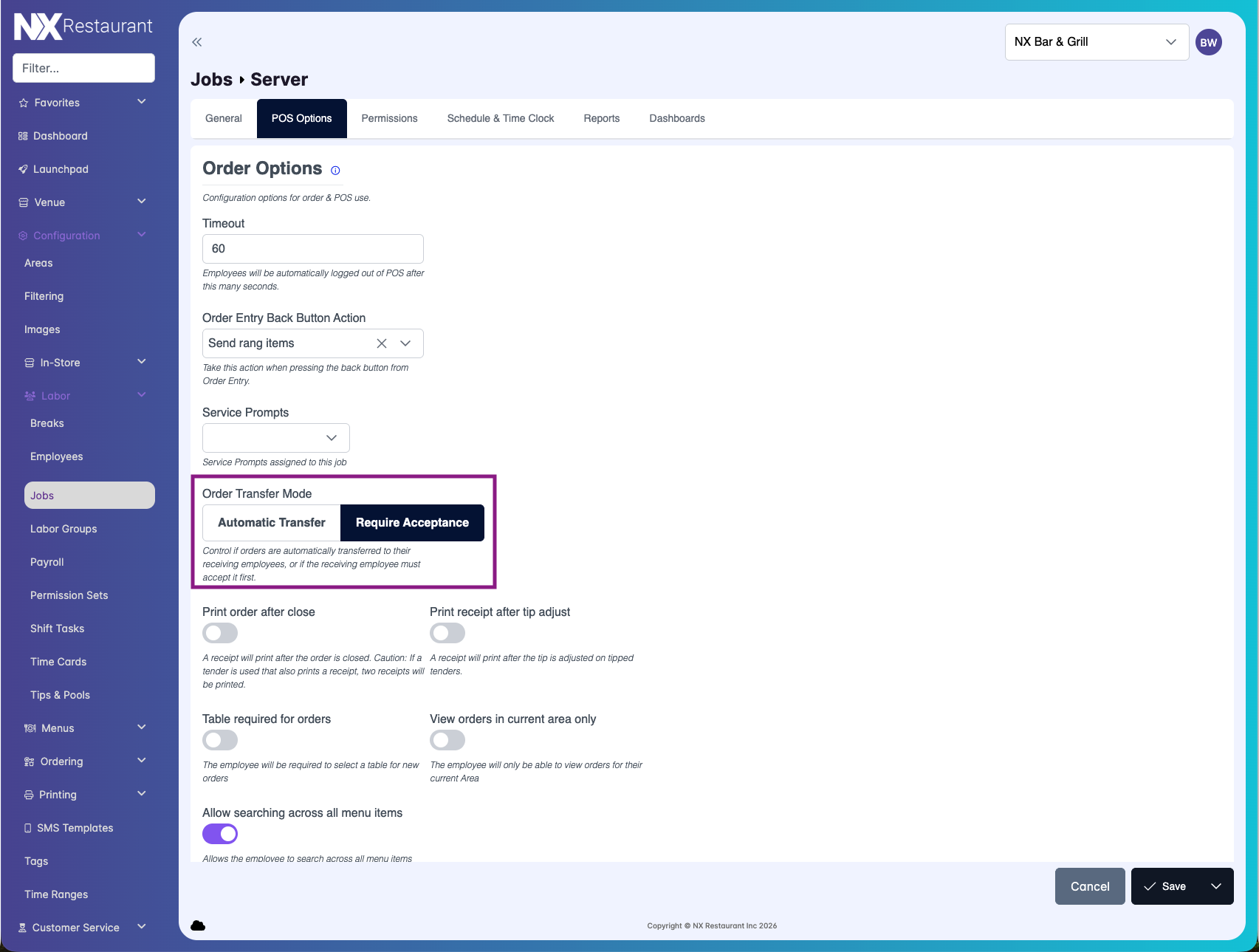 Before you start transferring, itโs helpful to know how your restaurant is set up. Depending on the Job Configuration in the back office, transfers happen in one of two ways: